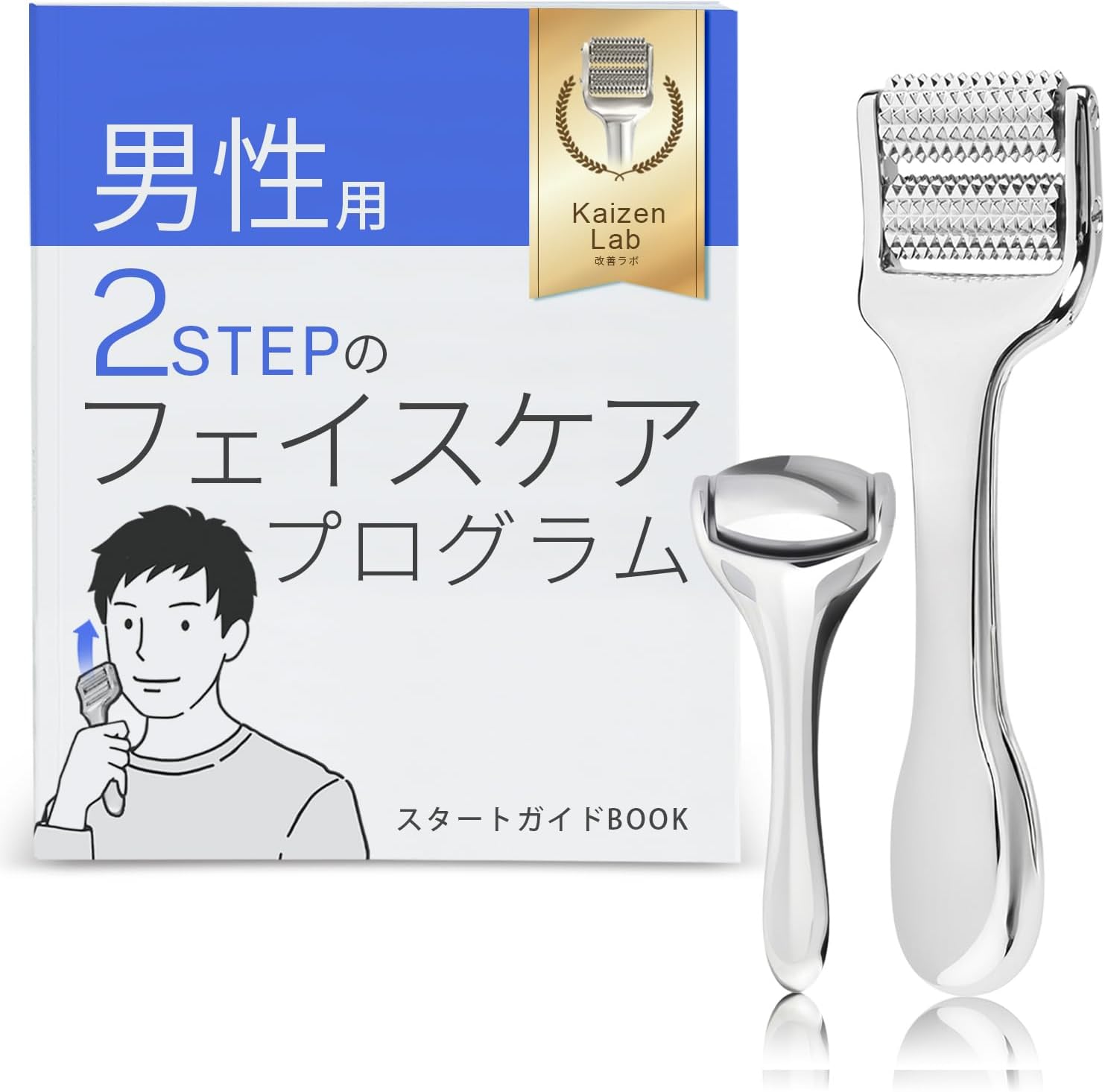 フェイスローラー男性用とかっさのセット ガイド付き メンズ 2STEPフェイスケアプログラム フェイシャルケア 改善ラボ