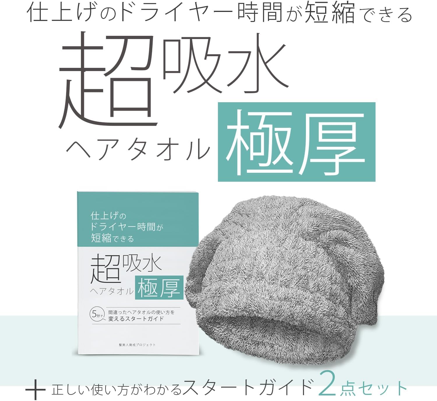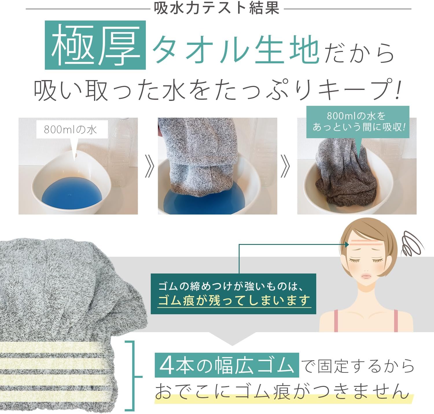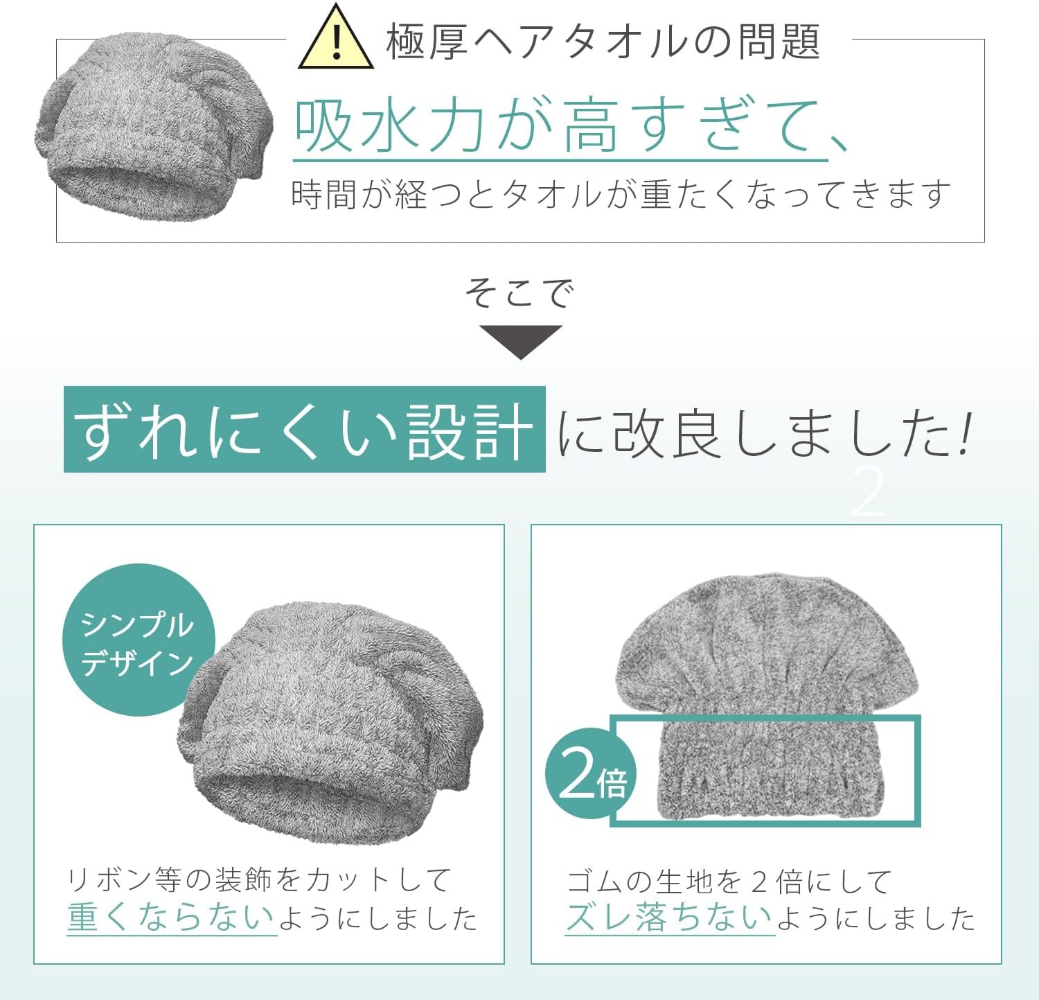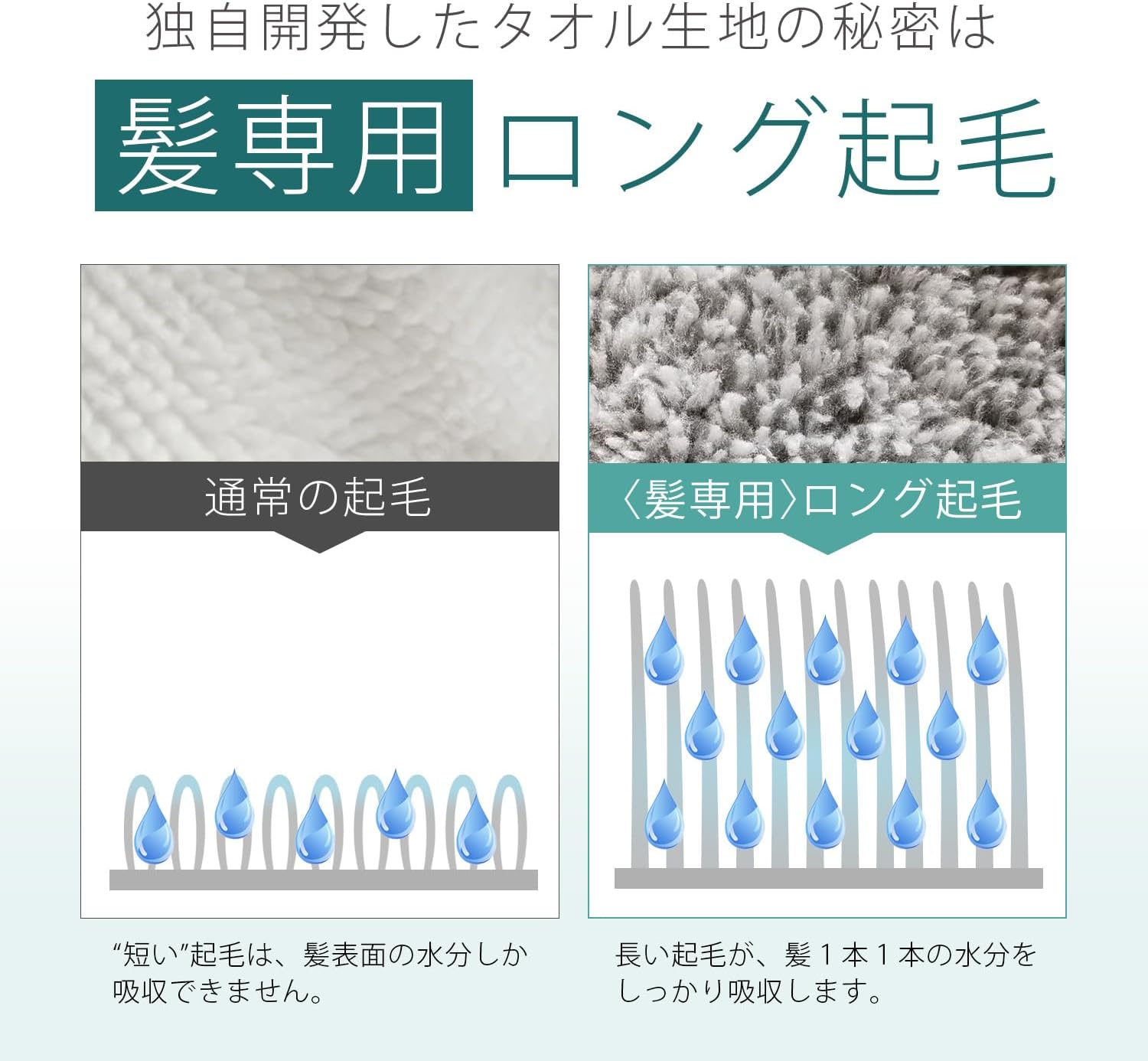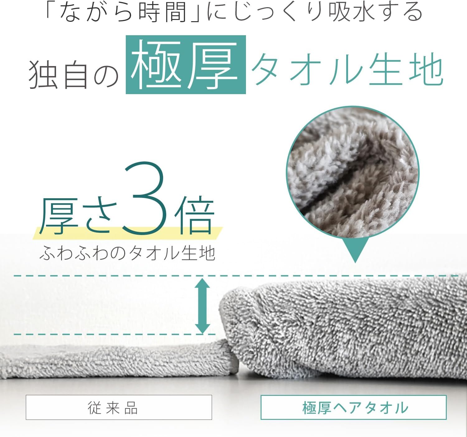 極厚のタオルが髪の水分をたっぷり吸水して速乾。